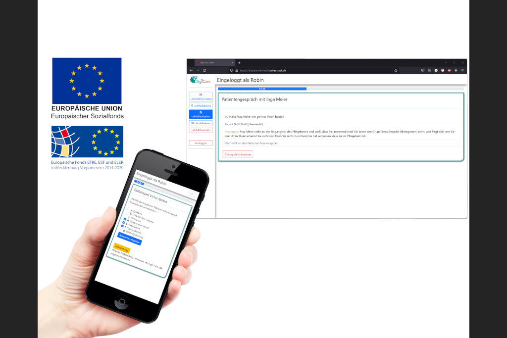 Um die Herausforderungen der Digitalisierung in der Pflege- und Gesundheitsverwaltung zu verstehen, wurde das DigiCare-Projekt ins Leben gerufen, um Lernerfahrungen durch innovative digitale Lösungen zu verbessern. Diese Initiative umfasst die Aufzeichnung vorhandener Vorlesungen und deren Organisation in eine semantische Struktur, die sowohl Präsenz- als auch Fernunterricht erleichtert. Zusätzlich entwickeln wir ein KI-Dialogsystem, das Studierenden hilft, indem es verschiedene Pflegeszenarien simuliert. Unser Lehrstuhl, die Practical Computer Science Group an der Universität Rostock, der Hochschule Neubrandenburg und dem Deutschen Zentrum für Neurodegenerative Erkrankungen Rostock/Greifswald, arbeiten zusammen.